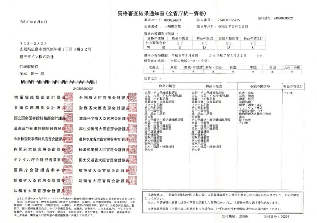 この度、弊社は「全省庁統一資格」を取得し、官公庁との取引を認められ、冊子「調達企業一覧」に掲載されました。