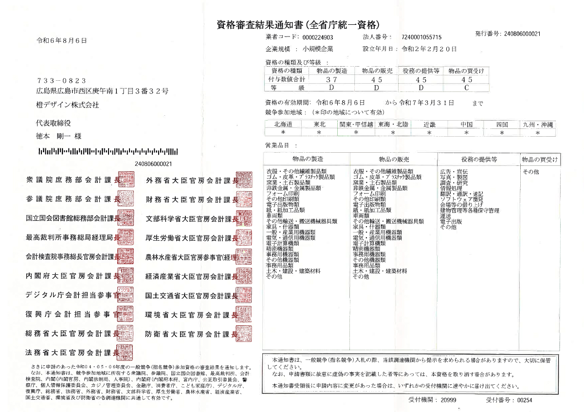 この度、弊社は「全省庁統一資格」を取得し、官公庁との取引を認められ、冊子「調達企業一覧」に掲載されました。